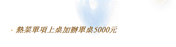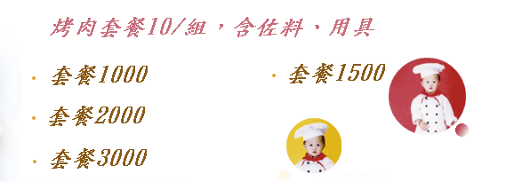 熱菜單項上桌加辦單桌5000元 熱菜單項上桌加辦單桌5000元 烤肉1000 烤肉2000 烤肉3000 烤肉1500